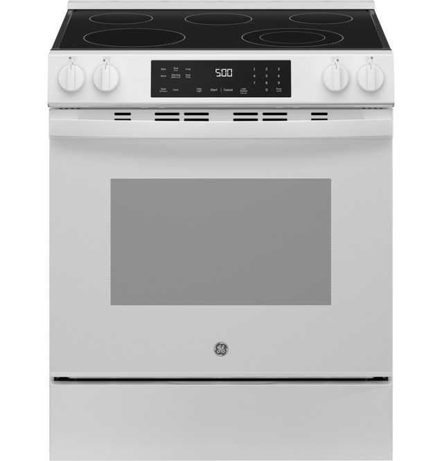 GE® ENERGY STAR® 30″ Slide-In Electric Range with Crisp Mode – GRS500PVWW