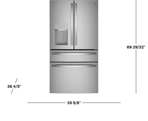 GE Profile – 23.3 Cu. Ft. 4-Door French Door Counter-Depth Smart Refrigerator with Dual-Dispense Auto-Fill Pitcher & Door In Door – Stainless Steel -PVD28BYNFS