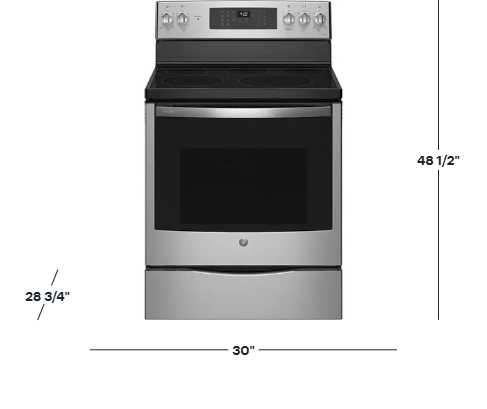 GE Profile – 30″ Smart Free-Standing Electric Convection Range with Self-Clean and Steam Clean with No Preheat Air Fry – Stainless Steel- PB900YVFS
