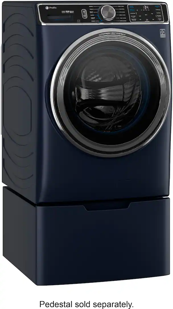 GE Profile – 5.3 Cu. Ft. High-Efficiency Stackable Smart Front Load Washer with Steam and UltraFresh Vent System+ With OdorBlock – Sapphire Blue -PFW870SPVRS